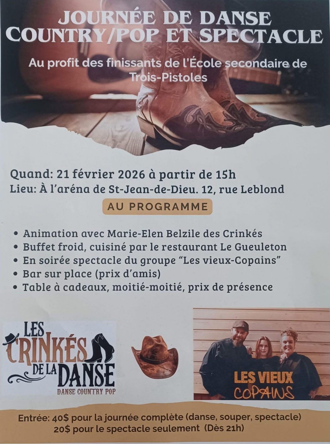 Au prix de 40$ pour tout ( danse, souper et spectacle Les vieux Copains )